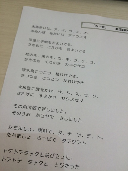 私が人生でまさか「あめんぼあかいな・・・」なんて練習する時が来るなんて