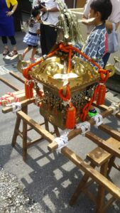 子供用のお神輿を小さな子たちが