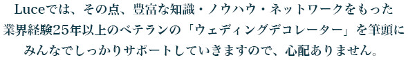 Luceでは「ウェディングプランナー」としての実力と経験があり、