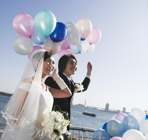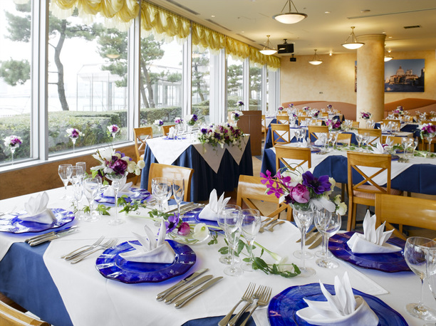 「海が見える」だけでは語り尽くせないロケーション。開放的な光と眺望、出港の汽笛が合図になる入場など、会場×周辺環境で印象的な1日を演出できます。