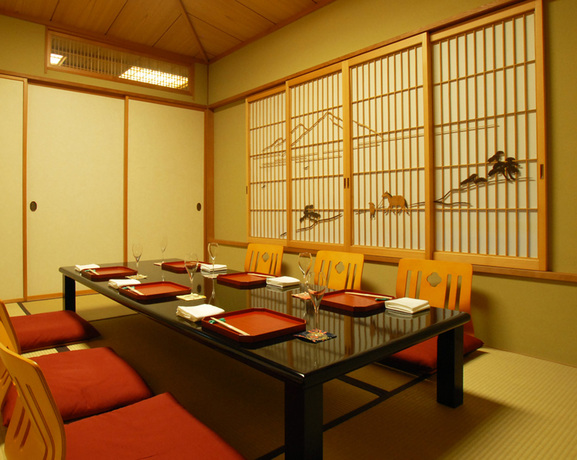 花街の面影を残す優雅なひととき、神楽坂の路地裏一軒家で愉しむ、四季折々の伝統加賀料理。 和食一筋30年の経験を生かした料理長による四季折々の伝統懐石料理で、ゆったりとした至福のひとときをおもてなしいたします。 シニアソムリエ厳選のシャンパンと日本料理との粋な組み合わせがおすすめ。 その他、希少なワインや日本酒、焼酎も豊富にご用意しております。 日本とフランスのマリアージュが神楽坂らしい。 色あざやかな九谷焼で伝統の加賀料理をより一層引き立てています.